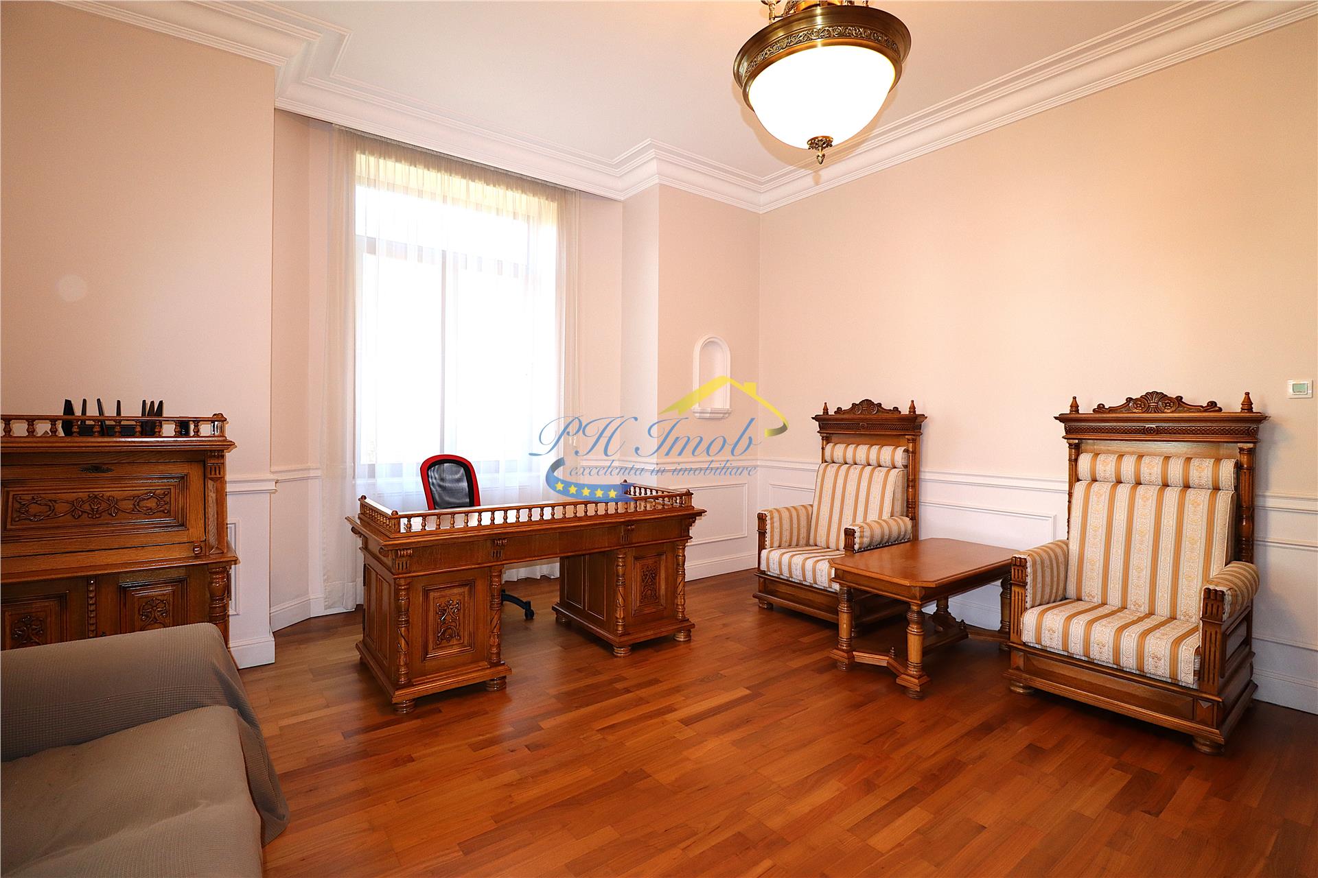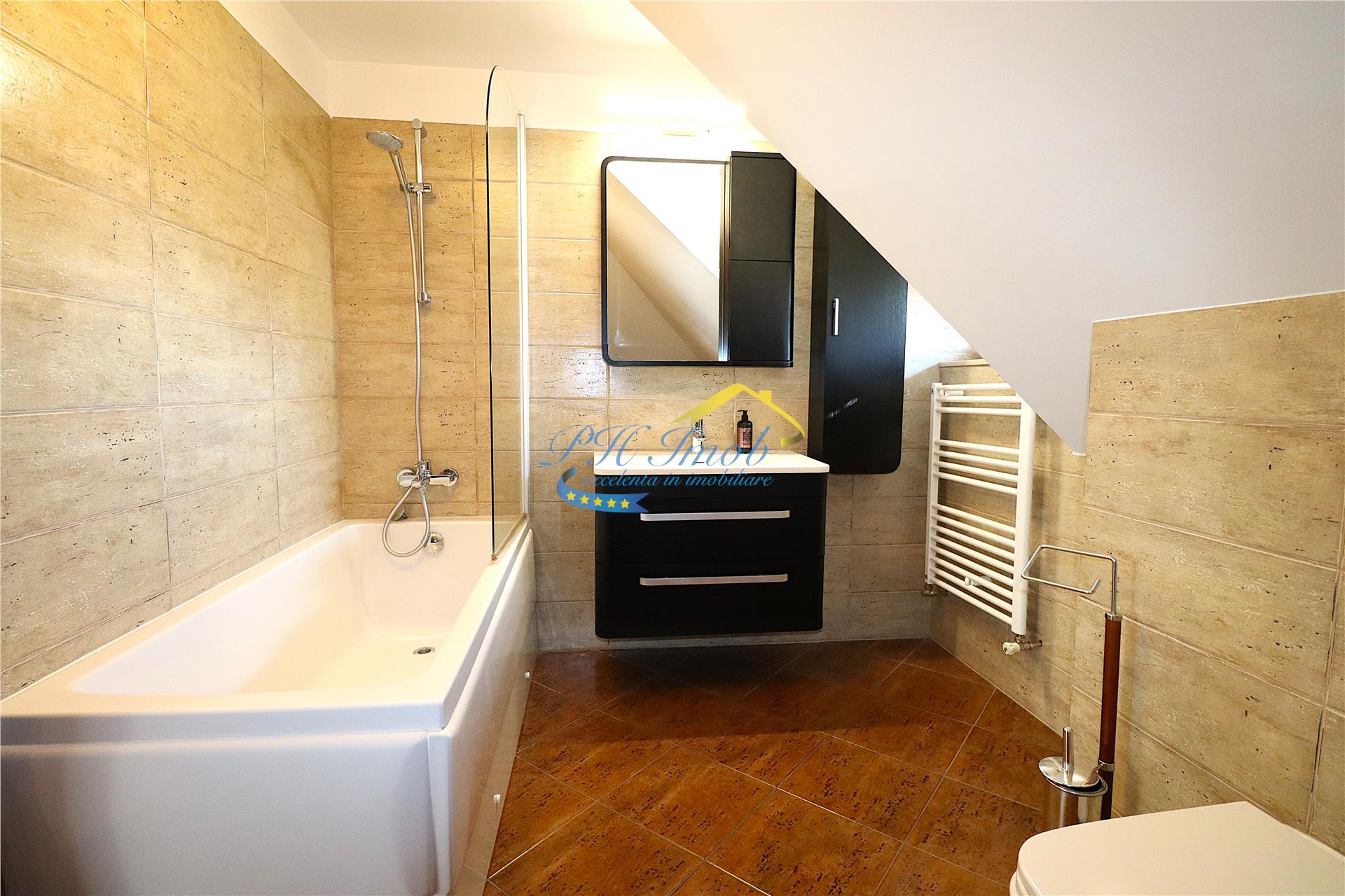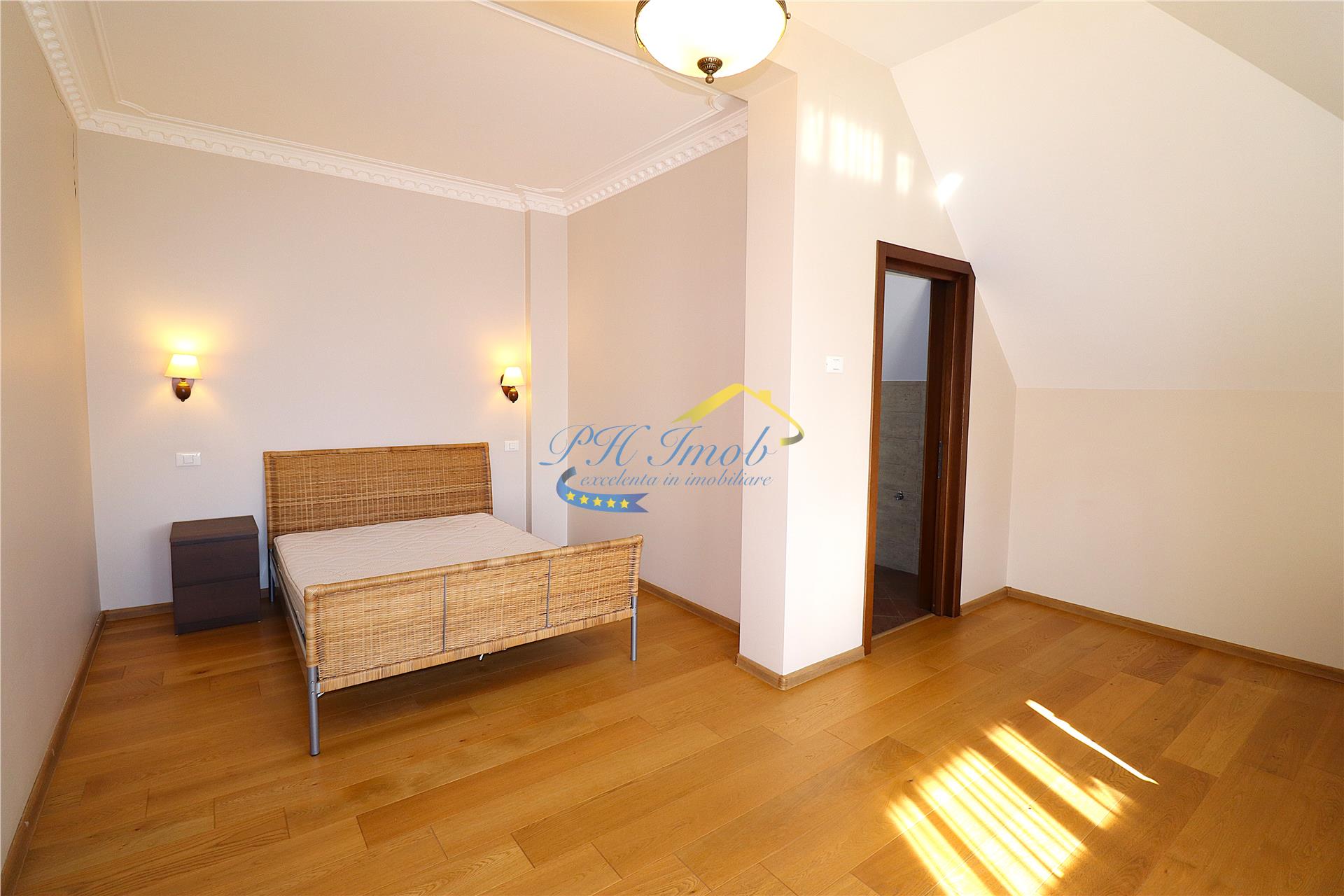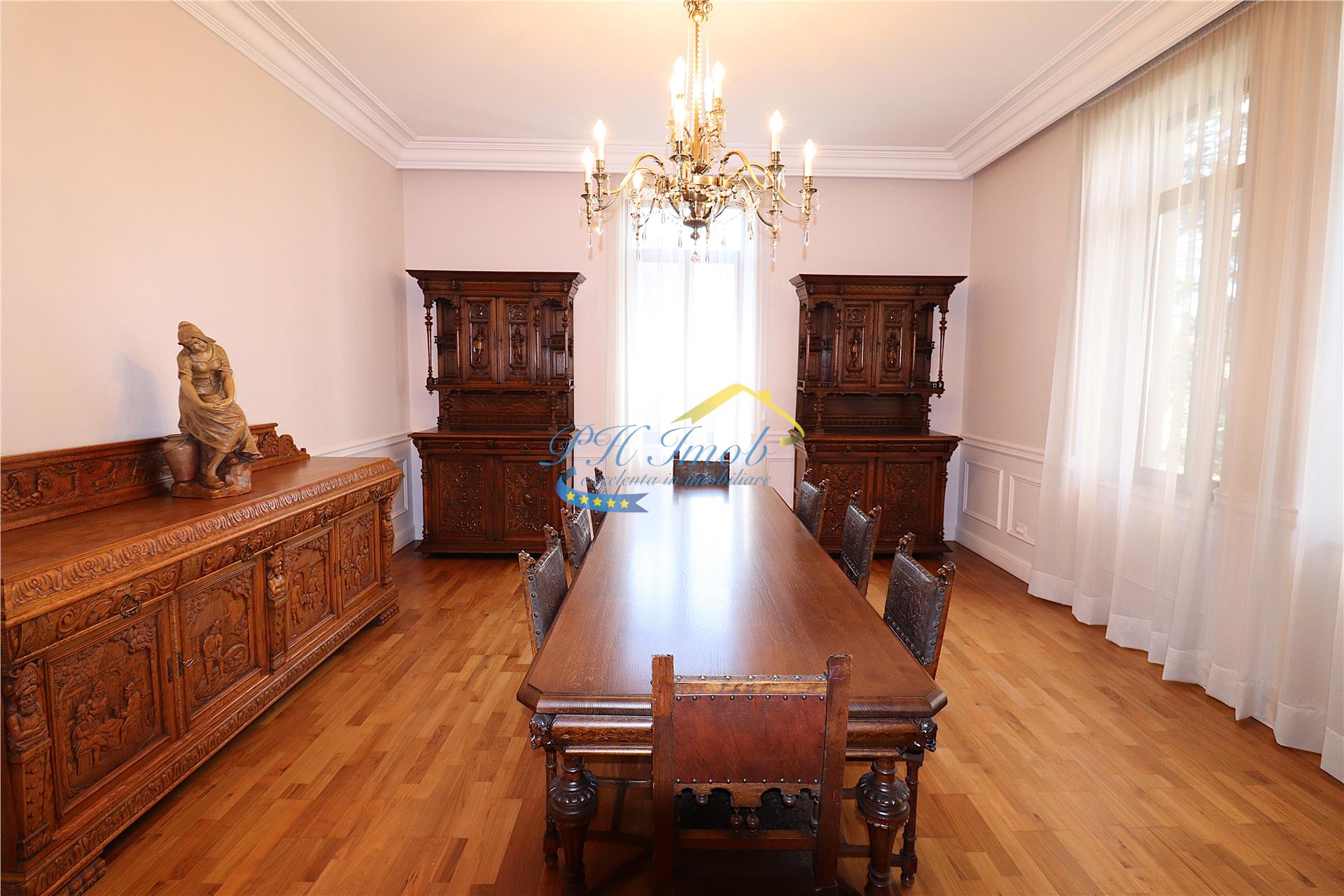 Agentia imobiliara PH Imob, va propune spre inchiriere o Vila S+P+E+M, situata in zona centrala a Municipiului Campina, renovata total in 2015, construita din zidarie portanta (caramida), cu fundatie, stalpi si plansee din beton armat, acoperis de tip sarpanta, construit din lemn, cu invelitoare din tabla tip Lindab, avand suprafata construita desfasurata de 565.82 mp, utila de aproximativ 450 mp si un teren, cu deschiderea de 23.41 m, in suprafata de 1193 mp.