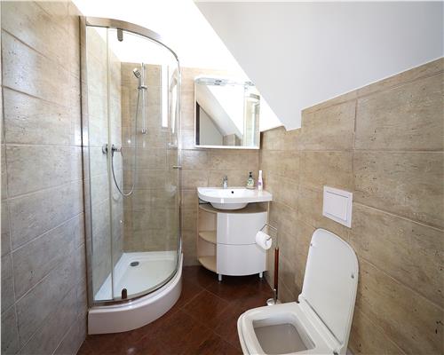 Etaj: trei apartamente, fiecare beneficiind de zona de relaxare, zona de odihana si baie proprie.