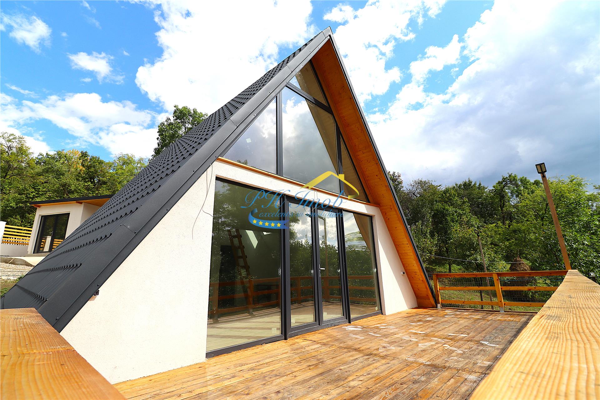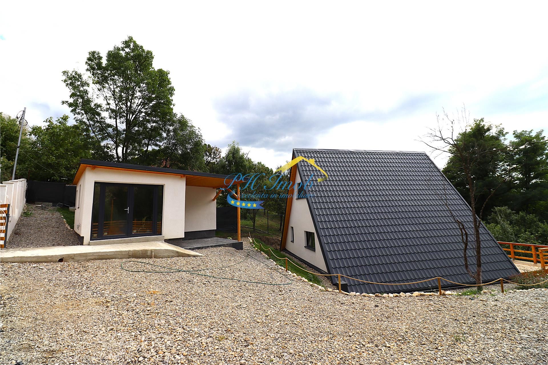 Agentia imobiliara PH Imob, va propune spre vanzare o proprietate, compusa din doua corpuri de casa (C1, P+M: A-Framme si C2 Parter), situata in Comuna Sotrile, construite in 2025 din lemn, tratat antiinsecte si antiincendiu, cu peretii de tip sandwich (OSB de 18 mm la exterior, vata minerala de 15 cm (folie de aluminiu) si rigips la interior, fundatie din beton armat, acoperite cu tabla Bilka, tamplarie PVC (Salamander) cu geamuri tripan, izolatie exterioara din polistiren de 10 cm (EPS 100).