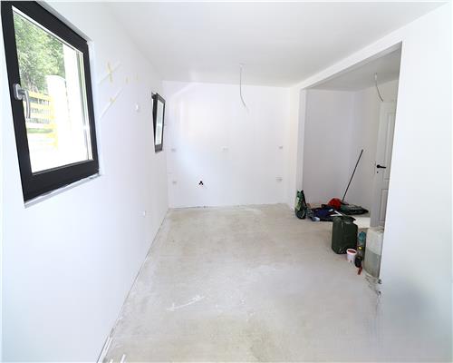 Parter: living cu bucatarie deschisa, baie, terasa acoperita.