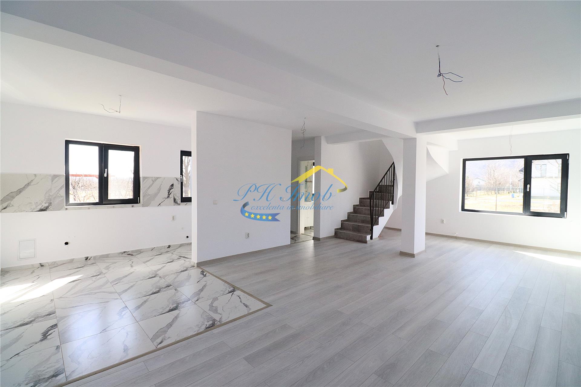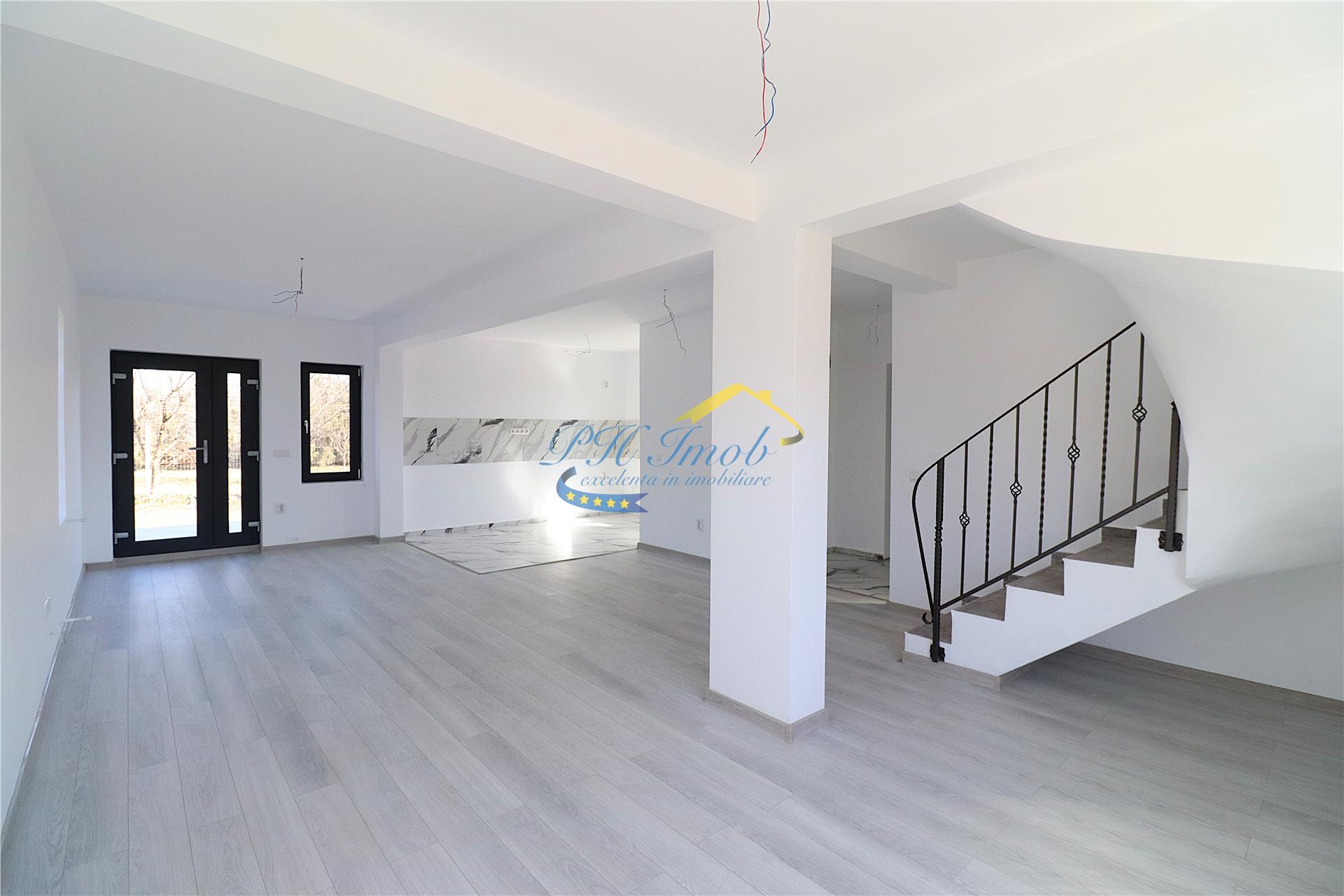 Parter: living, bucatarie cu dinning, baie, hol si casa scarii, baie, terasa acces (acoperita), terasa descoperita.